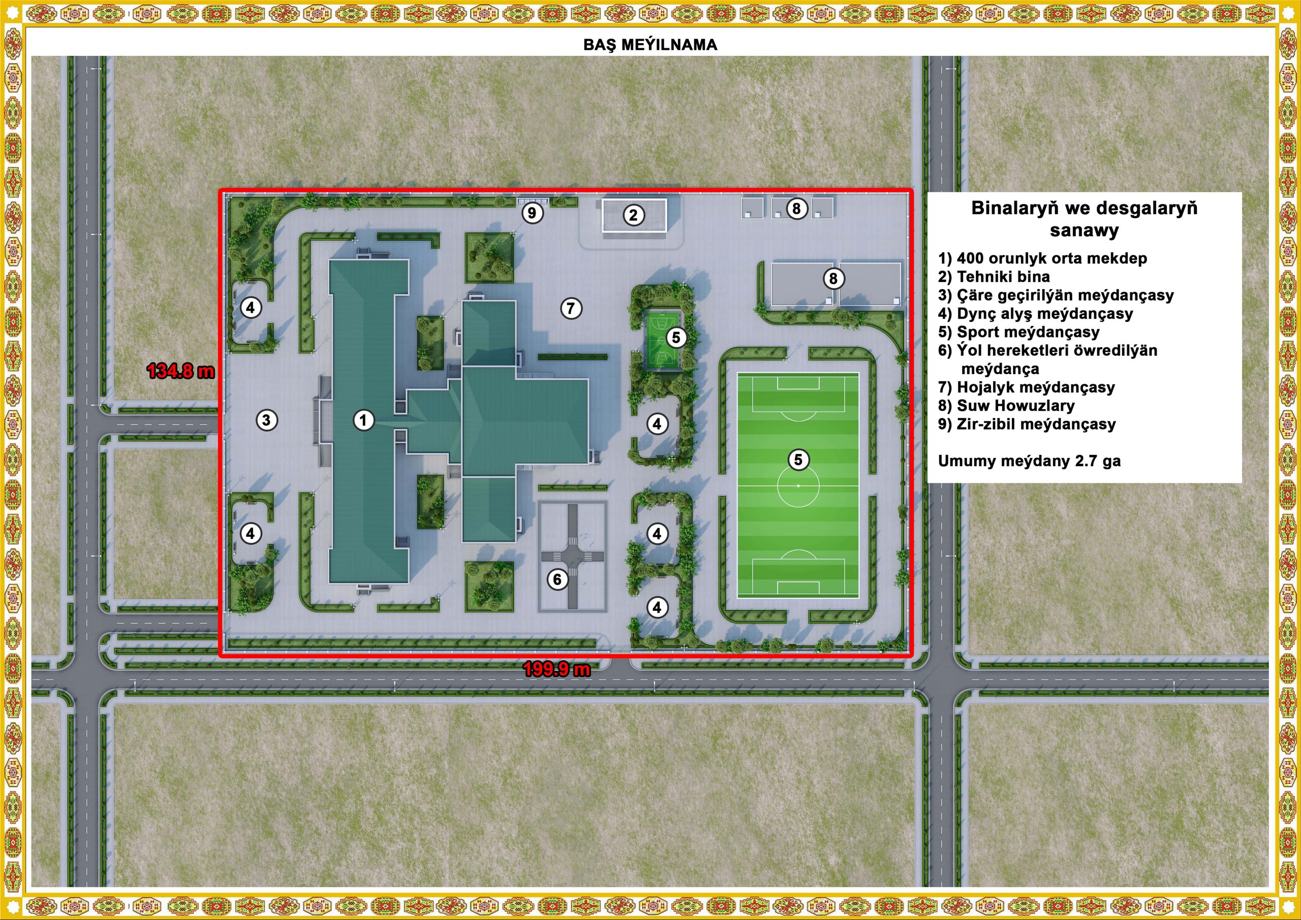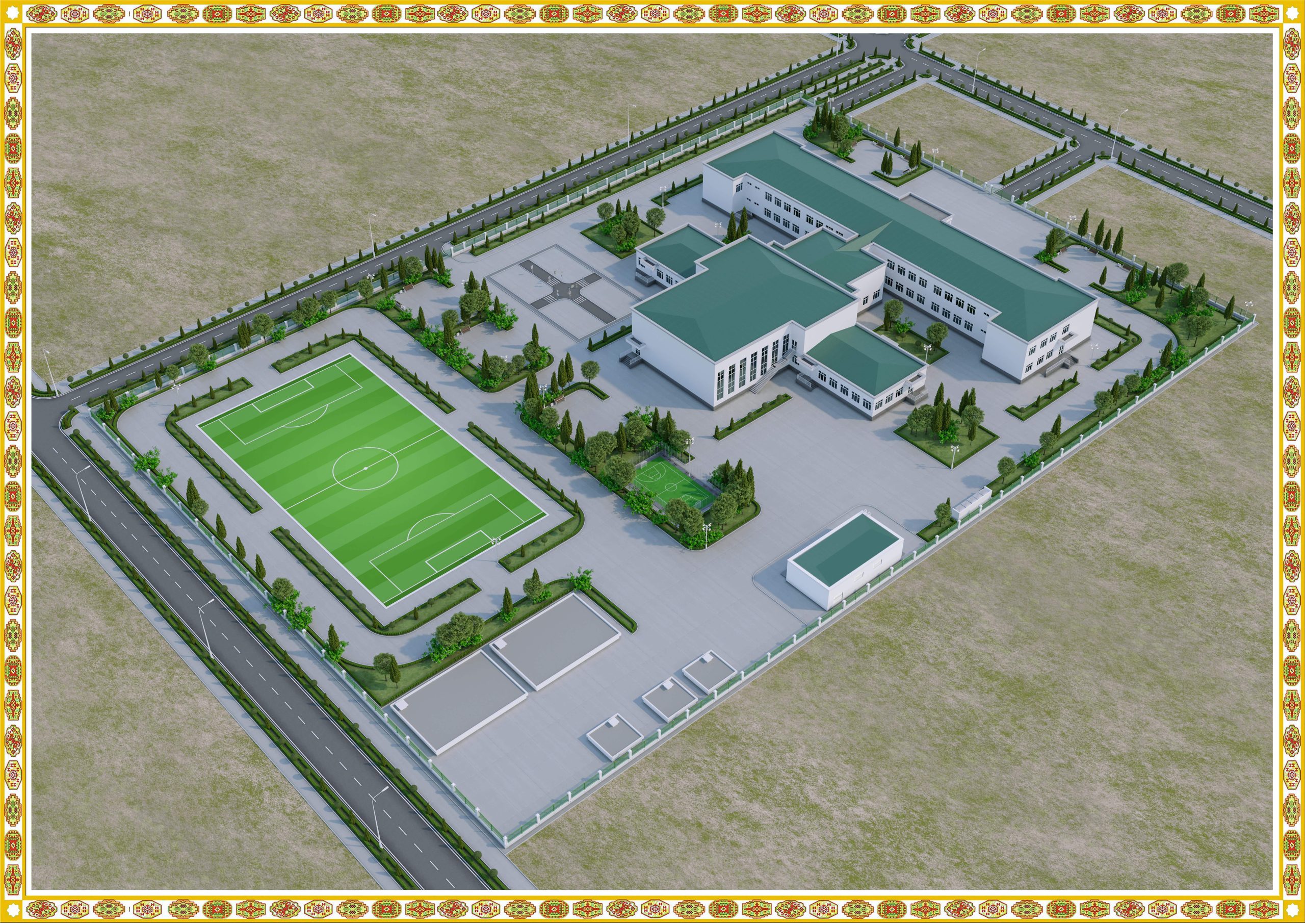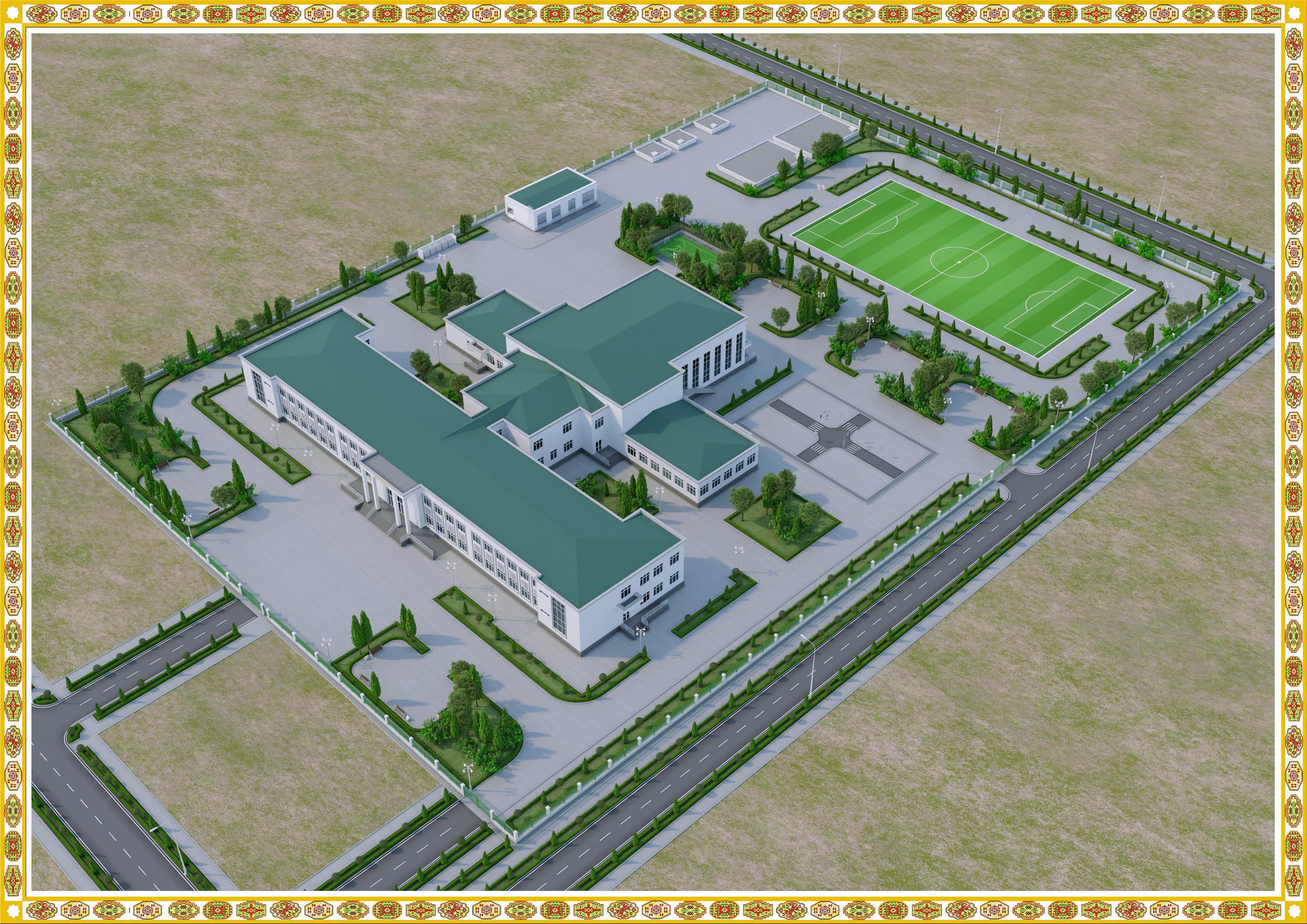 Ahal ili Kaka ilçesinde bulunan, 400 kişilik okulun inşaatı.